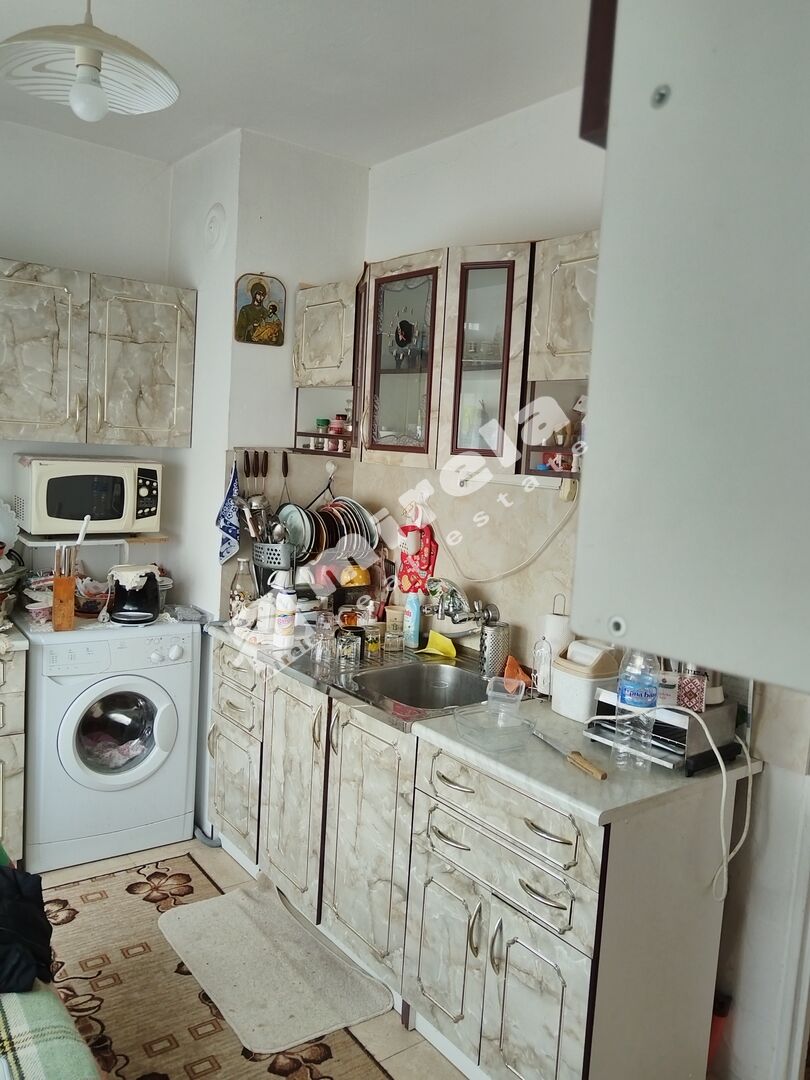 Апартаментът се състои от коридор, хол и кухня от които се излиза на балкон тип лоджия, баня с тоалетна. Нуждае се от ремонт, който удачно може да бъде съчетан с вътрешно преустройство на апартамента в 2-СТАЕН, като се изгради кухненски бокс на балкона пред дневната, а кухнята се обособи като самостоятелна спалня.